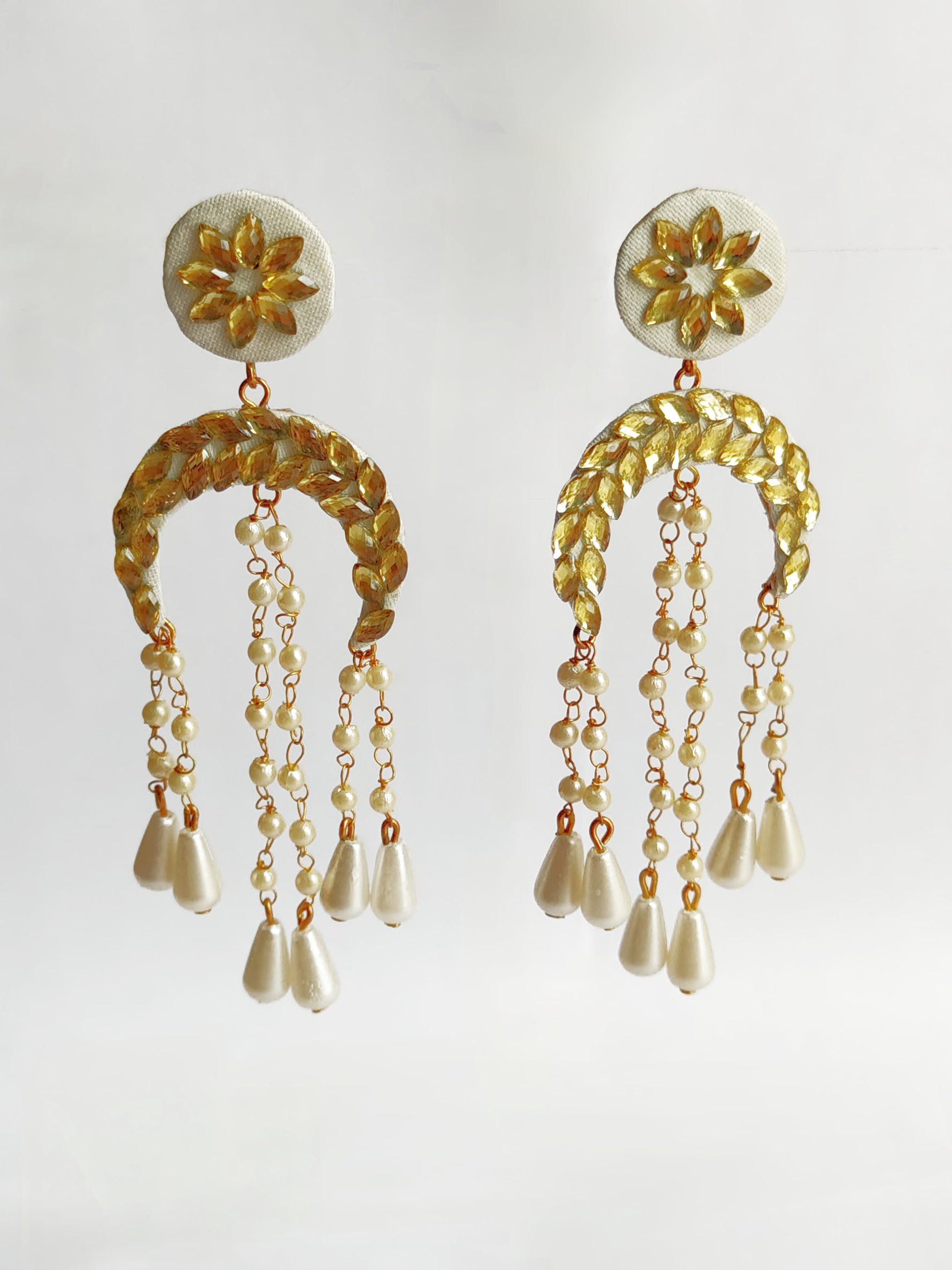 Bring a touch of handcrafted luxury to your look with these exquisite designer earrings. Beautifully detailed with delicate beadwork and intricate embellishments, this pair radiates festive charm and elegance. The graceful danglers add just the right amount of movement, making them a stunning choice for weddings, parties, or traditional celebrations. Lightweight, comfortable, and made with love — these earrings are sure to make every outfit shine brighter.